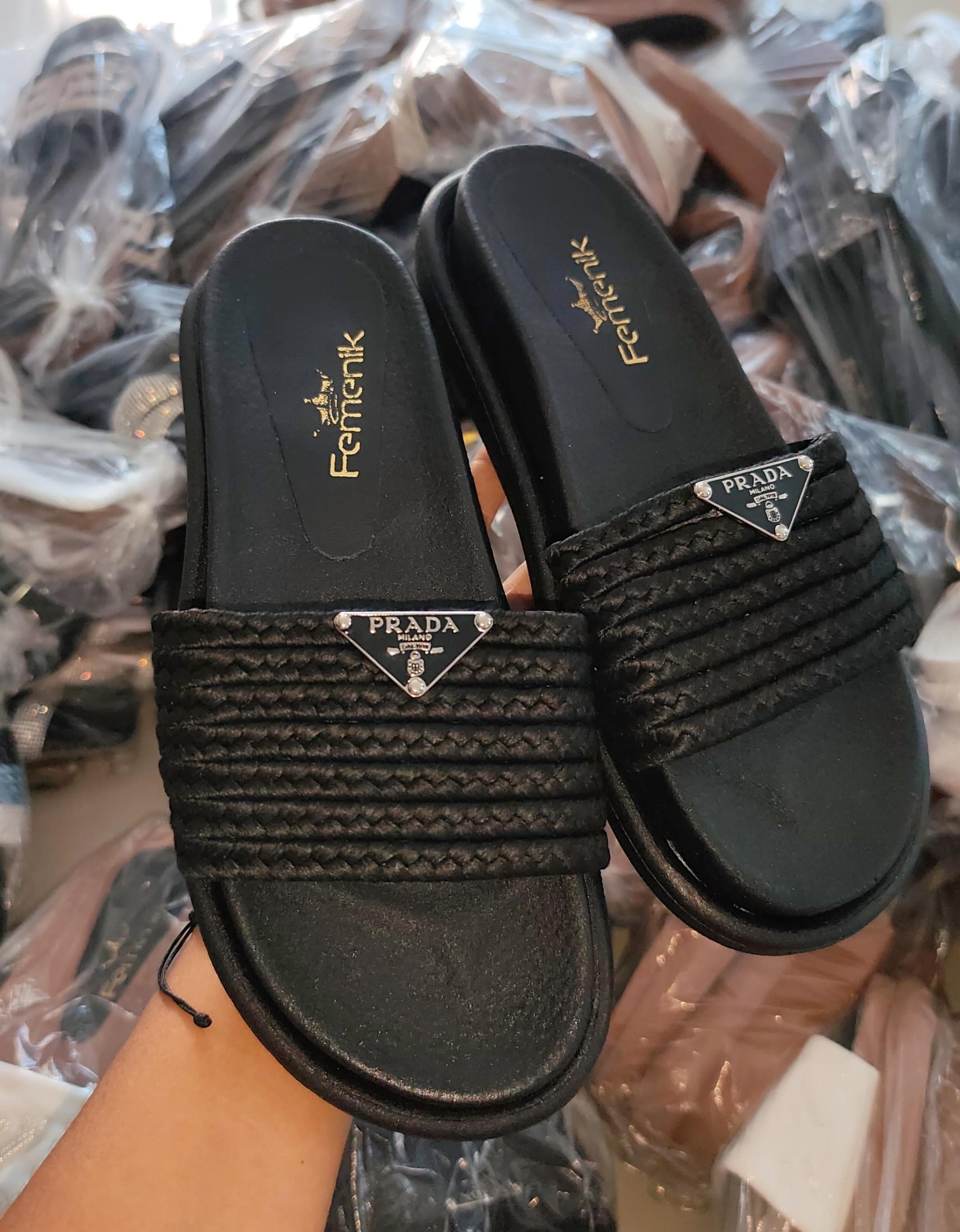 Ref: 014 - Trenza yute negro en canoa negra con decoracion